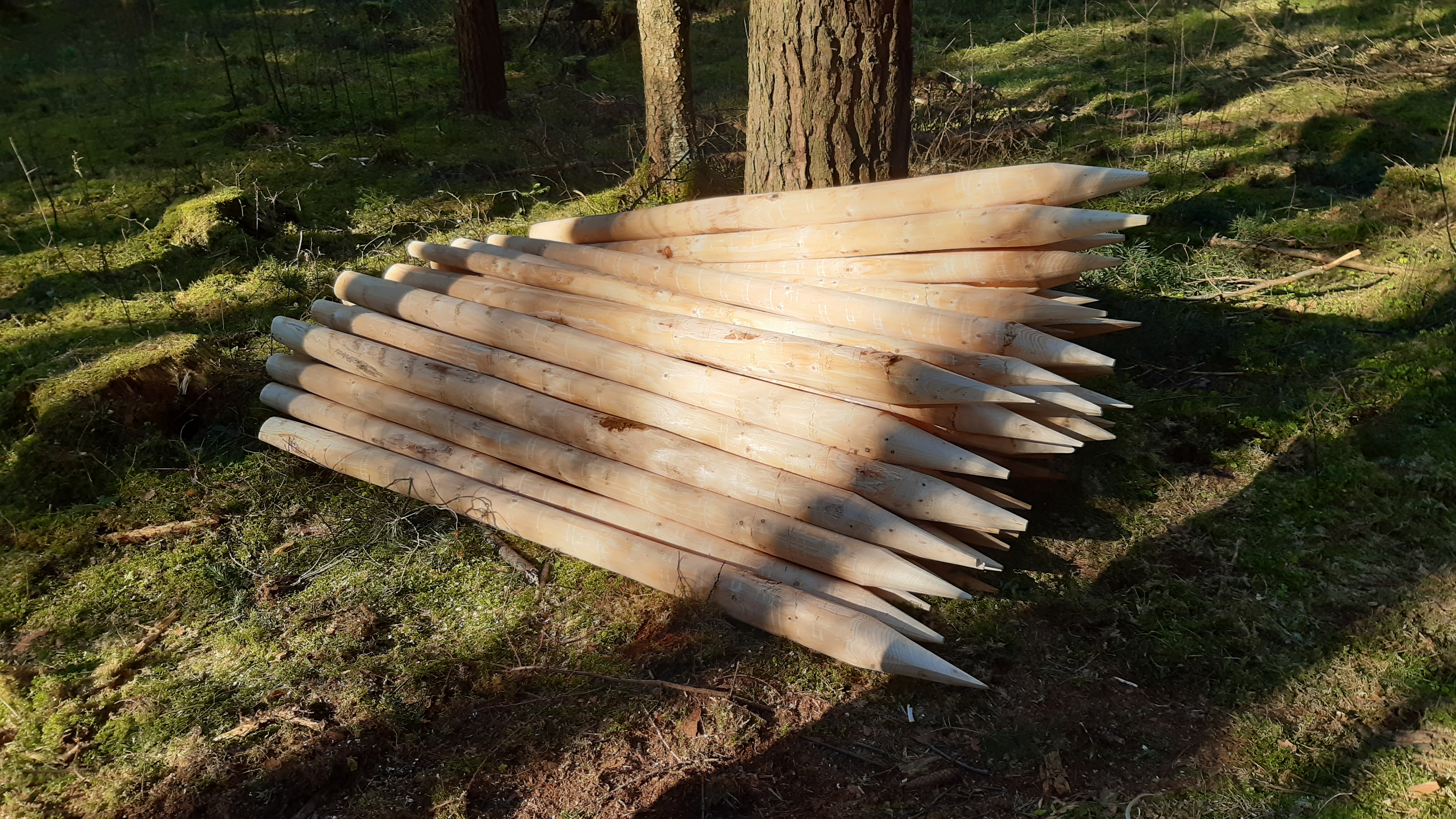 Mit unserer Neuhauser Schäl- und Spitzmaschine erstellen wir Rundholzstangen und Pfähle auch aus Ihrem Schwachholz.